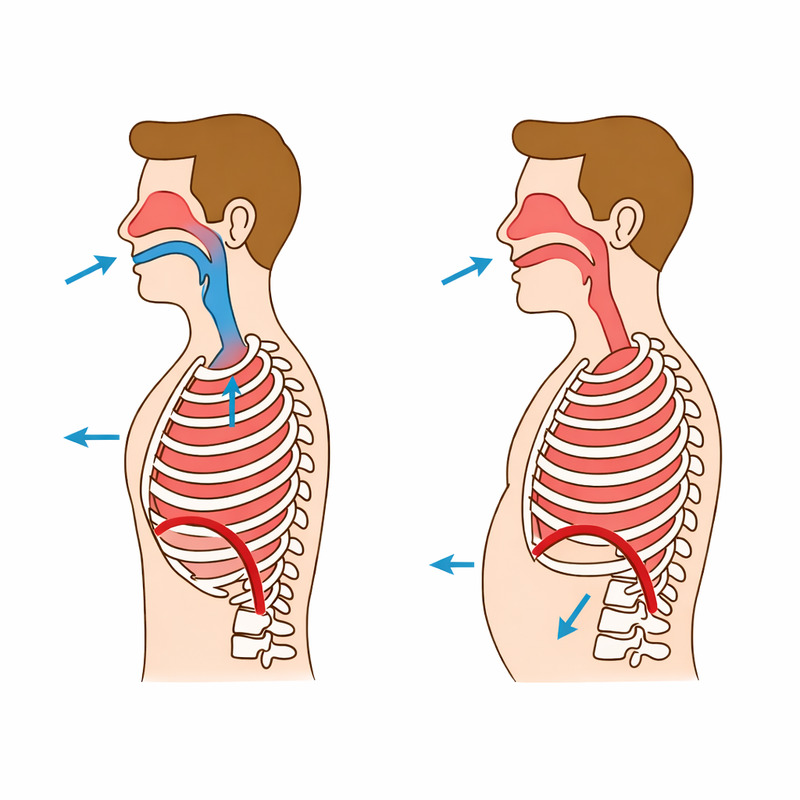 Oralno disanje dovodi do bržih, plitkih udisaja koji troše energiju, dok je nosno disanje sporije i učinkovitije za izmjenu CO₂.